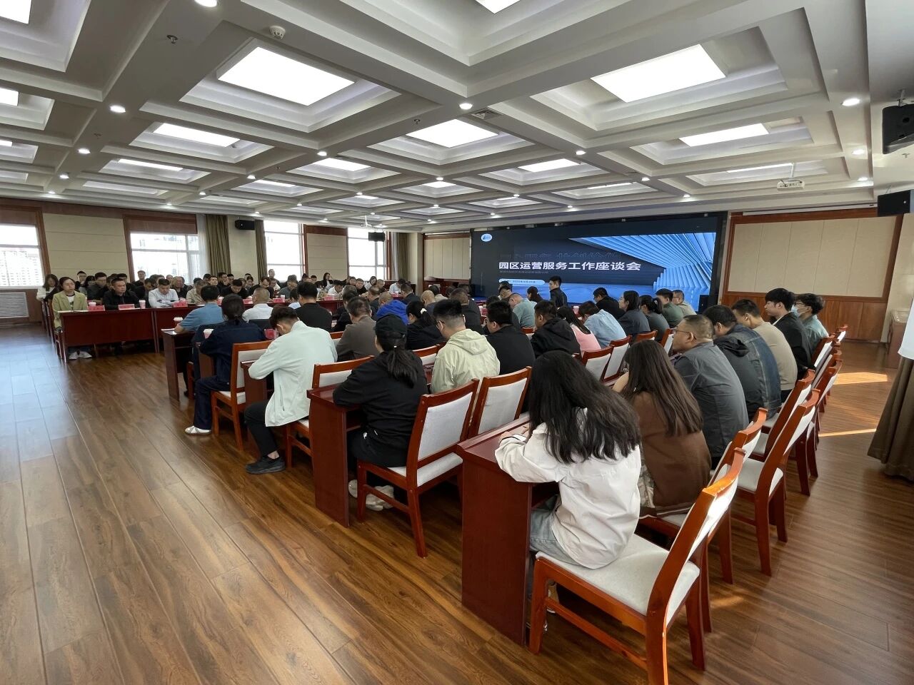 市园区公司领导班子、各部室及子公司负责人、各园区服务小组成员以及各入驻企业主要负责人参加,市园区公司总经理、副董事长王军民主持会议。