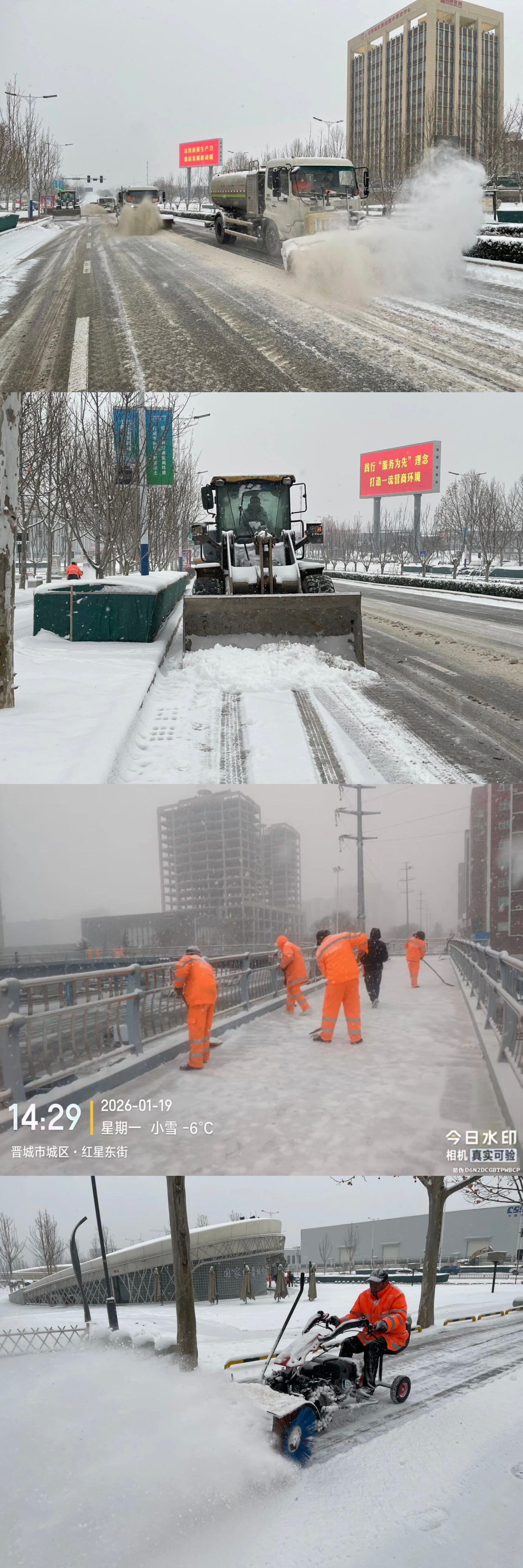 更暖心的是,看到大雪持续不停,晋城经开区管委会各部门、驻区单位及企业职工纷纷响应,拿起工具加入清雪队伍。大家不分你我、齐心协力,协助清理辅路积雪,重点攻坚园区小路、单位出入口等区域,凛冽寒风中,大家用实干与坚守为辖区道路畅通增添了坚实保障。