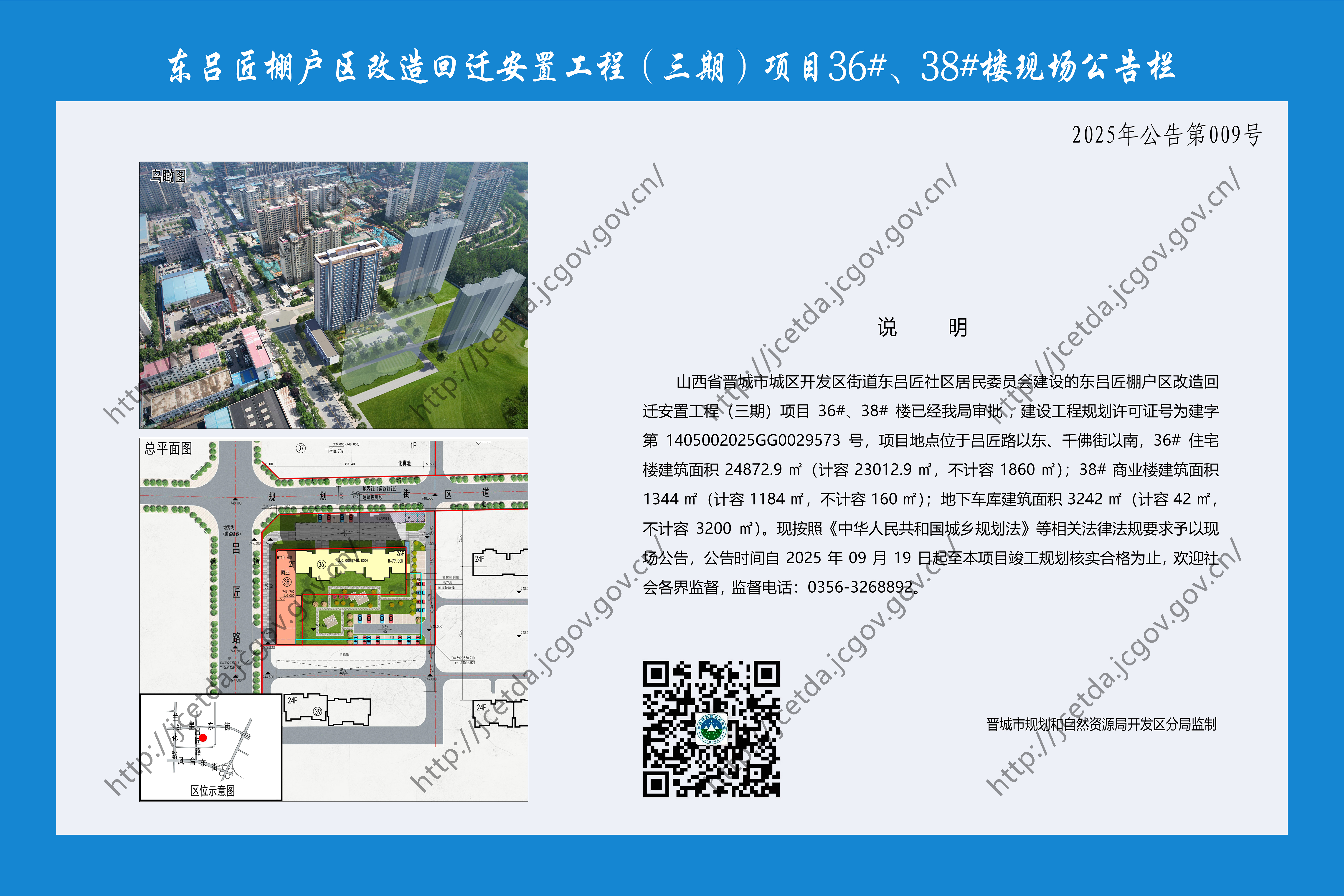 东吕匠棚户区改造回迁安置工程(三期)项目36#、38#楼现场公告